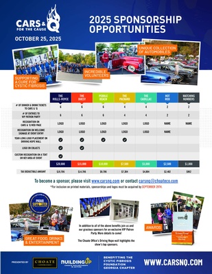 Join Choate Construction in the fight to cure CF! Become a Sponsor of Cars & ‘Q for the Cause 2025: