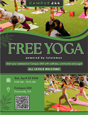 Start your weekend with movement, mindfulness, and community at Campus 244. Join us for a free, all-levels yoga class powered by lululemon and open to everyone—whether you’re a regular yogi or brand new to the mat. Come stretch, breathe, and connect in a relaxed, welcoming environment designed to leave you feeling refreshed and ready for the weekend ahead.